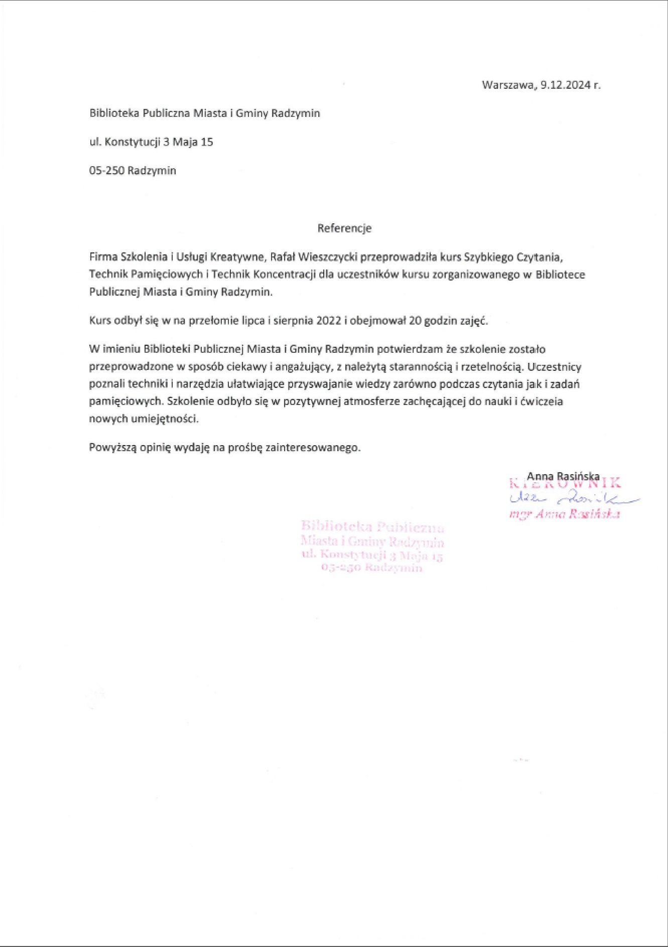 Referencje od organizacji